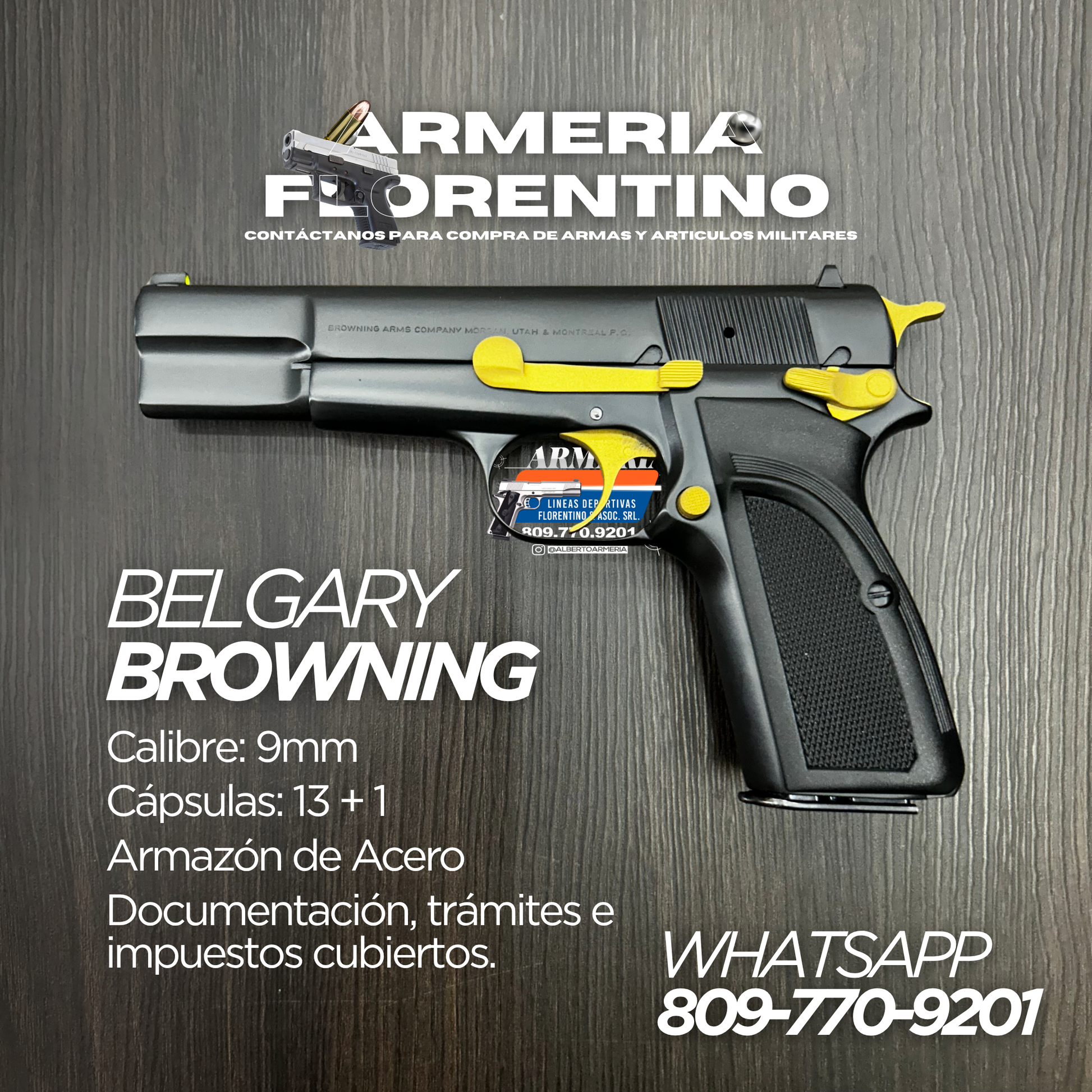 PISTOLA BROWNING, MODELO HI-POWER, CALIBRE 9MM, CAPSULAS: 13 + 1