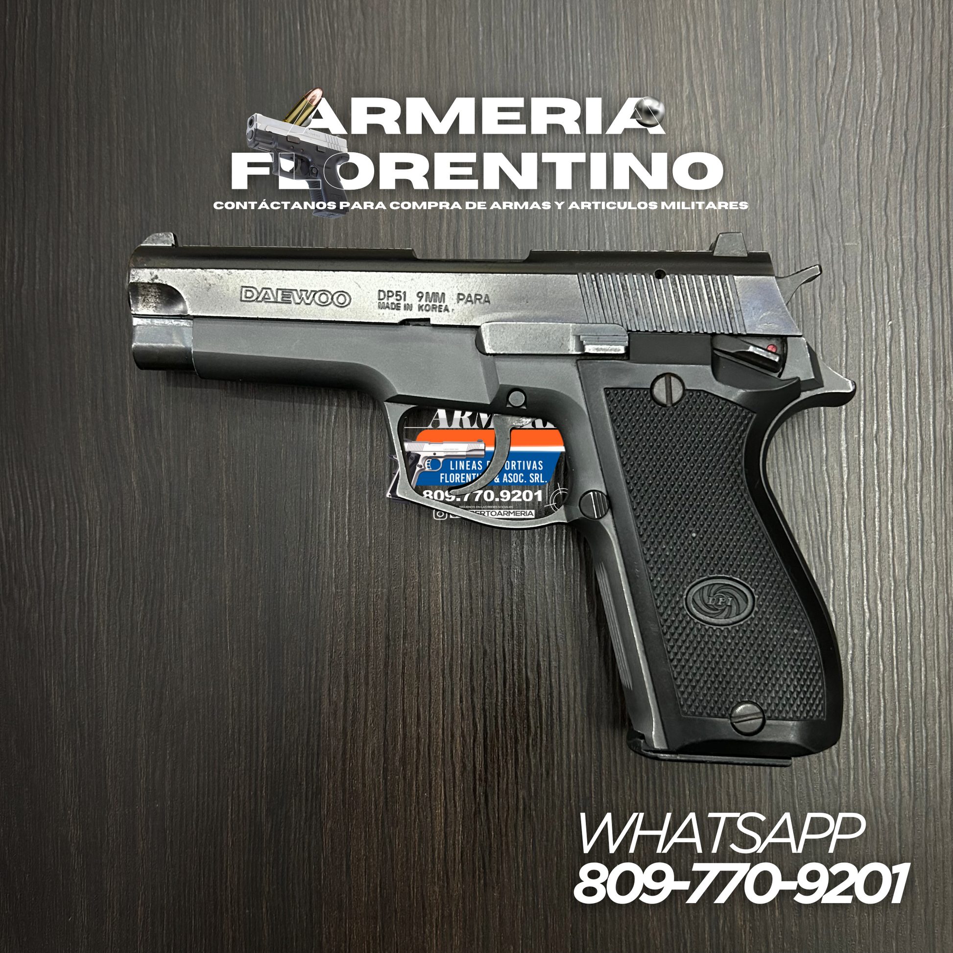 Pistola surcoreana de servicio comercialmente conocida como DP51, variante civil del K5 ligera, ergonómica y con un disparador “Fast Action” que mejora la rapidez de respuesta. Muy valorada por su construcción sólida y diseño moderno para su época.